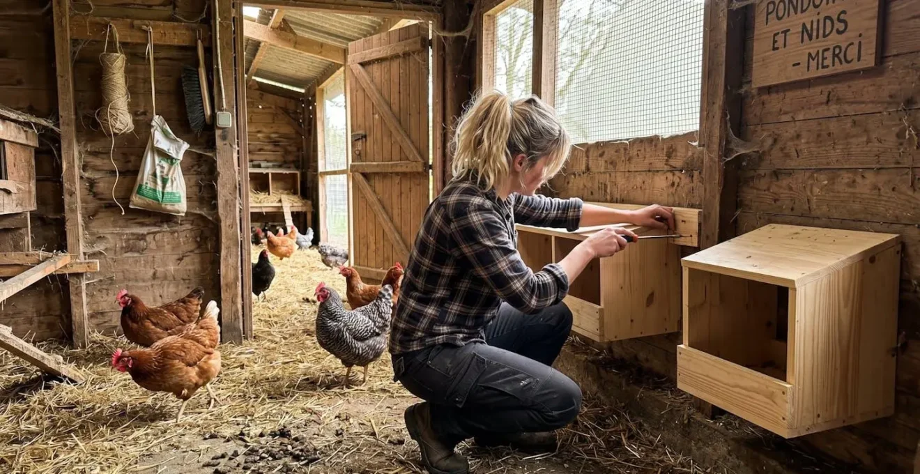 Pour que les poules adoptent facilement de nouveaux pondoirs, il faut d’abord préparer correctement la zone. Le support doit être propre, stable et sans bruit parasite. Des équipements mal fixés ou placés à la va-vite risquent de perturber les poules et de freiner leur utilisation. Dans certains cas, une mise en place progressive aide aussi le groupe à s’habituer plus calmement aux nouveaux nids.